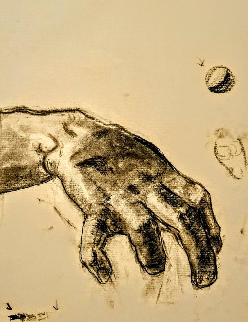Autoritratto - Fusaggine e pastello Conté à Paris su carta Kraft cm 29,7 x 42